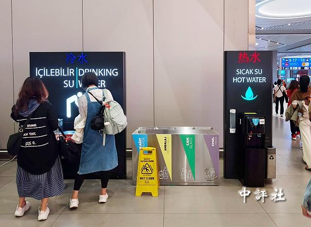 | 伊斯坦堡機場的飲水機有中文標示。(中評社 方敬為攝) |