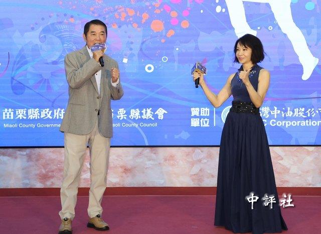 | 苗栗縣長鍾東錦28日跟歌手范怡文合唱經典老歌。(中評社 盧誠輝攝) |