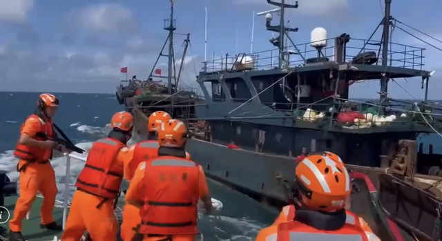 澎湖海巡隊準備強靠“粵南澳漁”大陸漁船登檢。(照:海巡署金馬澎分署提供)