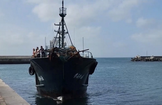 海巡拖帶陸船進澎湖七美港。(照:海巡署金馬澎分署提供)