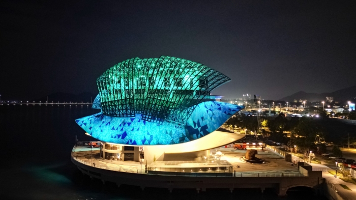 霛龜造型的林祥雄美術館坐落在馬來西亞檳城海濱,晚間七彩變幻,成為檳城新地標。