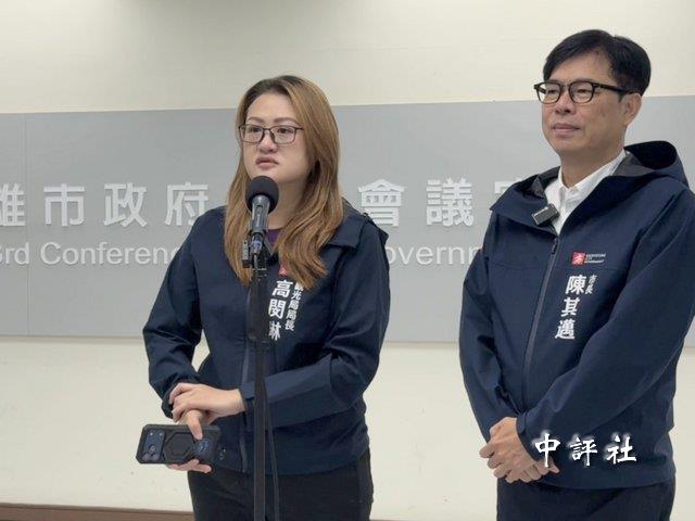 民進黨籍高雄市長陳其邁(右)、高雄市“觀光局長”高閔琳24日在市府受訪。(中評社 蔣繼平攝)