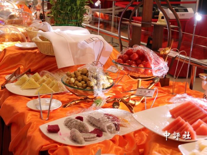 茶歇區擺放著甜品供記者選用(中評社 陳思遠攝)
