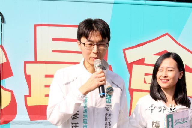 民眾黨參選新北市議員三重、蘆洲區黑馬的政治素人陳彥廷還不習慣面對媒體,經常沒看鏡頭。(中評社 鄭羿菲攝)