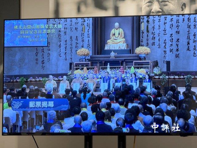 高雄佛光山藏經樓3日舉辦“傳燈六十‧百年仰望郵票”發行典禮,有提供直播畫面。(中評社 蔣繼平攝)